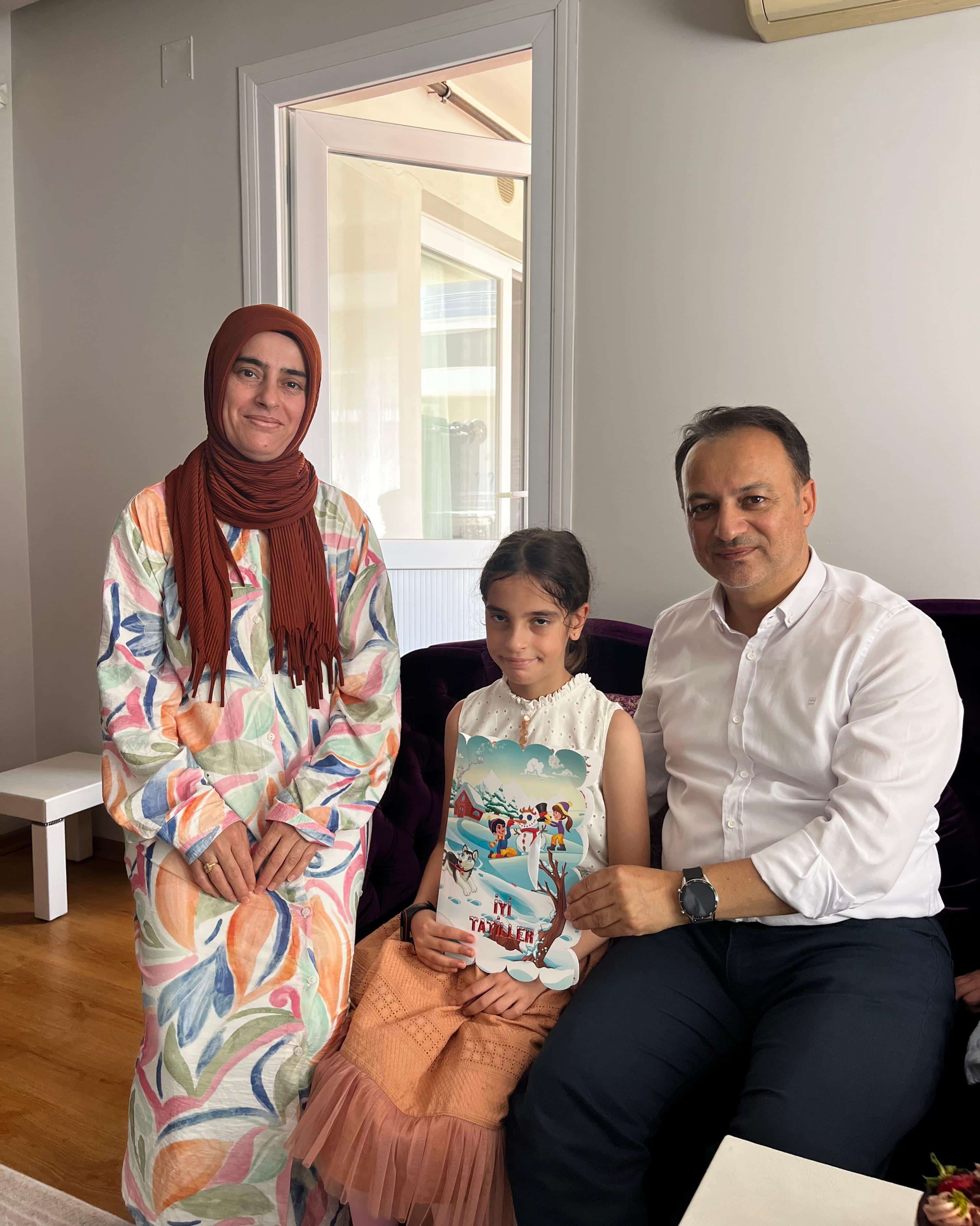 Karne töreni kapsamında küçük bir kutlama da yapıldı; pasta kesilerek öğrenciler ve aileleriyle birlikte karne sevinci paylaşıldı. Müdürümüz, öğrencilere çeşitli hediyeler verdi, aileden öğrencilerle ilgili bilgi aldı ve öğrencilerimizle sohbet etti.