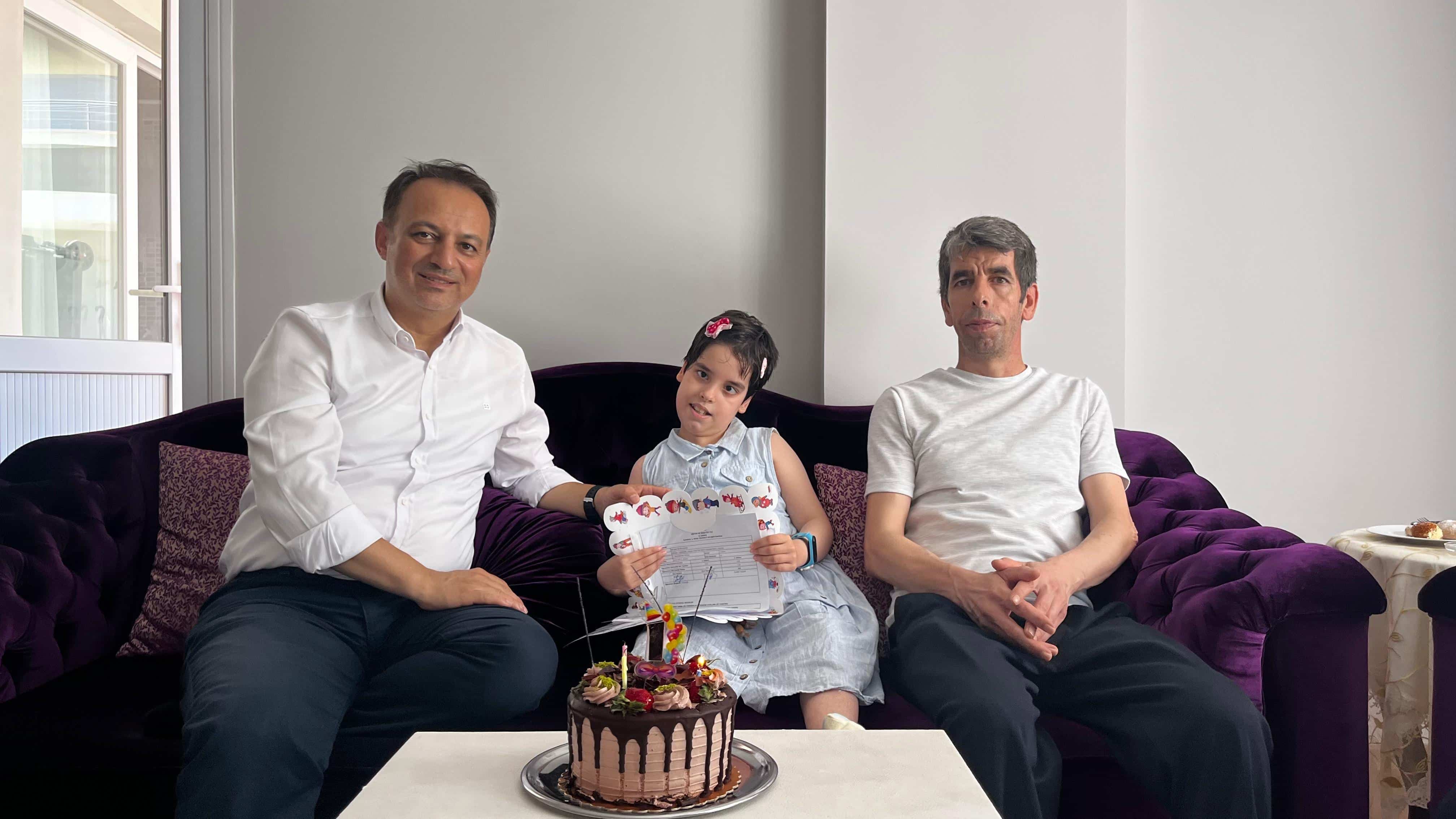 Evde eğitim gören Hüseyin Polat Özel Eğitim Uygulama Okulu öğrencisi Belinay Bilge Ulucan ve ikizi, Necati Bolkan İlkokulu öğrencisi Vesile Esra Ulucan'a karneleri, İlçe Millî Eğitim Müdürümüz Sayın Mehmet Necmeddin Dinç tarafından evlerinde takdim edildi.